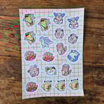All sticker sheets come inside an A5 cello before being packaged to ship in a board-backed "do-not-bend" envelope.