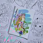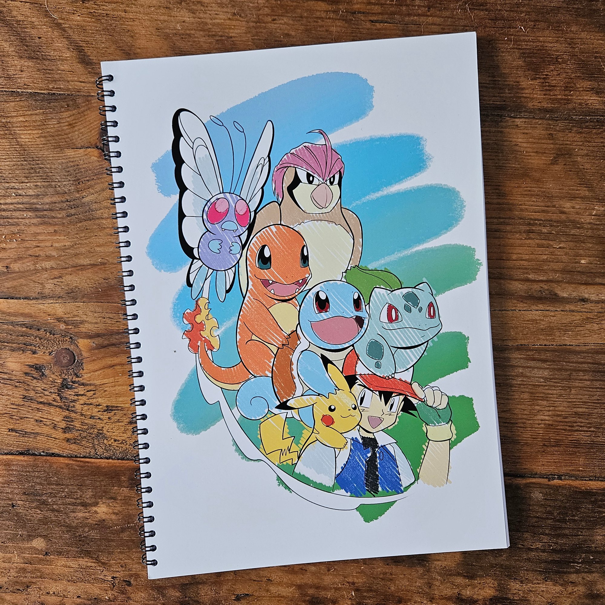 A4 colouring book including 28 of my Pokemon drawings. Spiral-bound on nice & thick 170gsm recycled paper. All of the pages are single-side printed so you don’t have to worry about bleeding into the drawing overleaf if you use heavy markers/watercolours etc. The pages easily tear out if you want to remove them before or after colouring!